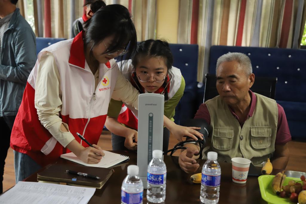 “献爱心、暖人心”。座谈会后,基础医学院的学生志愿者们为老同志送上贴心医疗保健服务,详细讲解心肺复苏知识,现场模拟急救情景,给每一位老同志测量血压,询问身体状况并提出健康管理建议。
