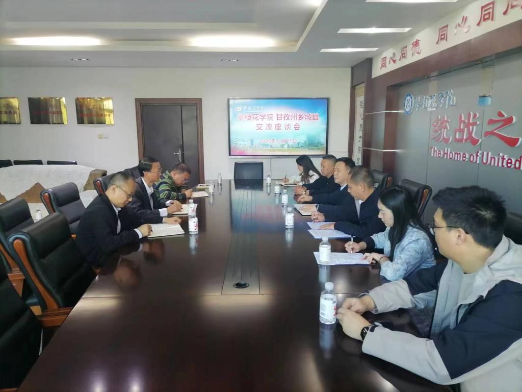 11月11日,甘孜州乡城县委常委、副县长郭建带队到校交流座谈。学校党委常委、副校长朱波强,学校派驻乡城县挂职副县长蒋志强、帮扶干部安昀,乡城县援建办、乡村振兴局、组织部、政府办相关人员,学校党政办、帮扶办相关同志参加座谈。