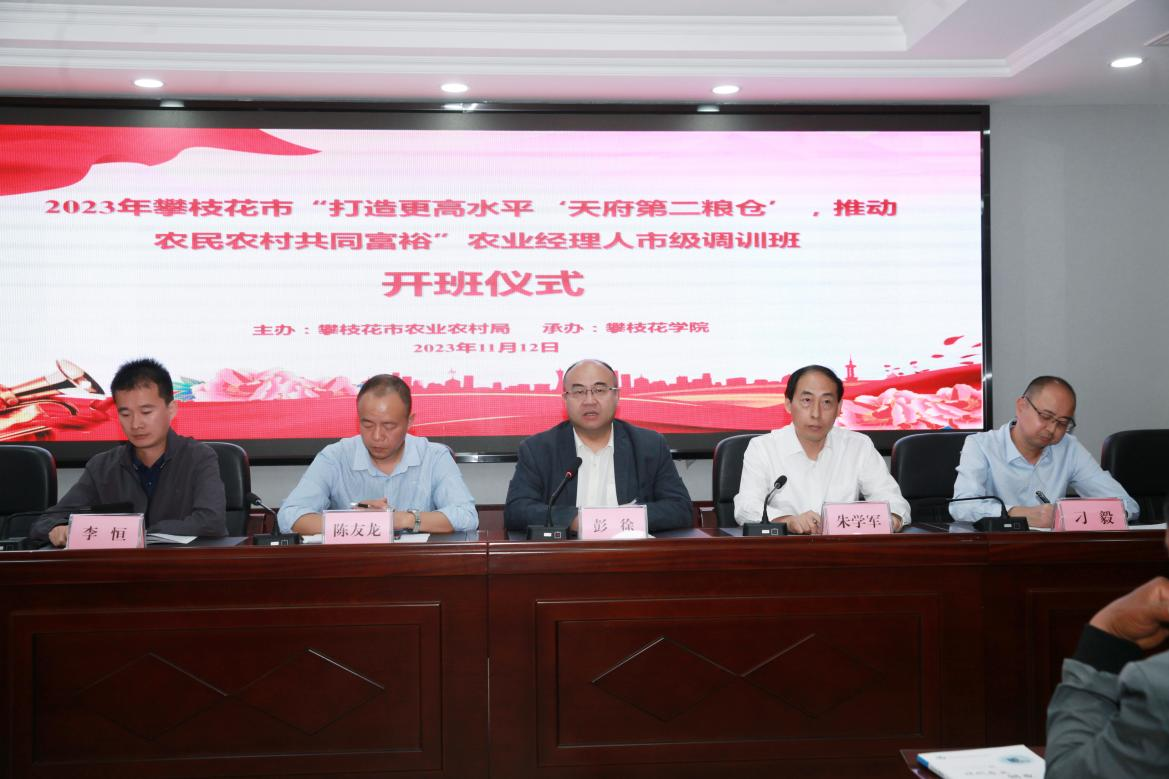 11月12日,2023年攀枝花市“打造更高水平‘天府第二粮仓’,推动农民农村共同富裕”农业经理人市级调训班在beat365继续教育红格培训基地开班。党委副书记、纪委书记彭徐,攀枝花市农业农村局副局长陈友龙,中共攀枝花市委农村工作领导小组办公室专职副主任李恒,以及市农业农村局、学校生化学院(农学院)相关同志参加开班仪式。仪式由生化学院(农学院)院长朱学军主持。