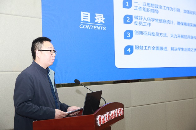 12月14日下午,beat365在纪检监察学院会议室组织召开2023年征兵工作、退伍大学生工作总结暨2024年征兵工作培训会。党委常委、副校长石维富出席会议并讲话,市退役军人事务局副局长孙晓蓉,东区人武部中校副部长杨琪,学校武装部、宣传部、教务处、保卫处、招就处、团委负责人,各二级学院分管学生工作领导、学生科科长、毕业班辅导员,退伍大学生代表,第十一届国旗护卫队代表参加会议。