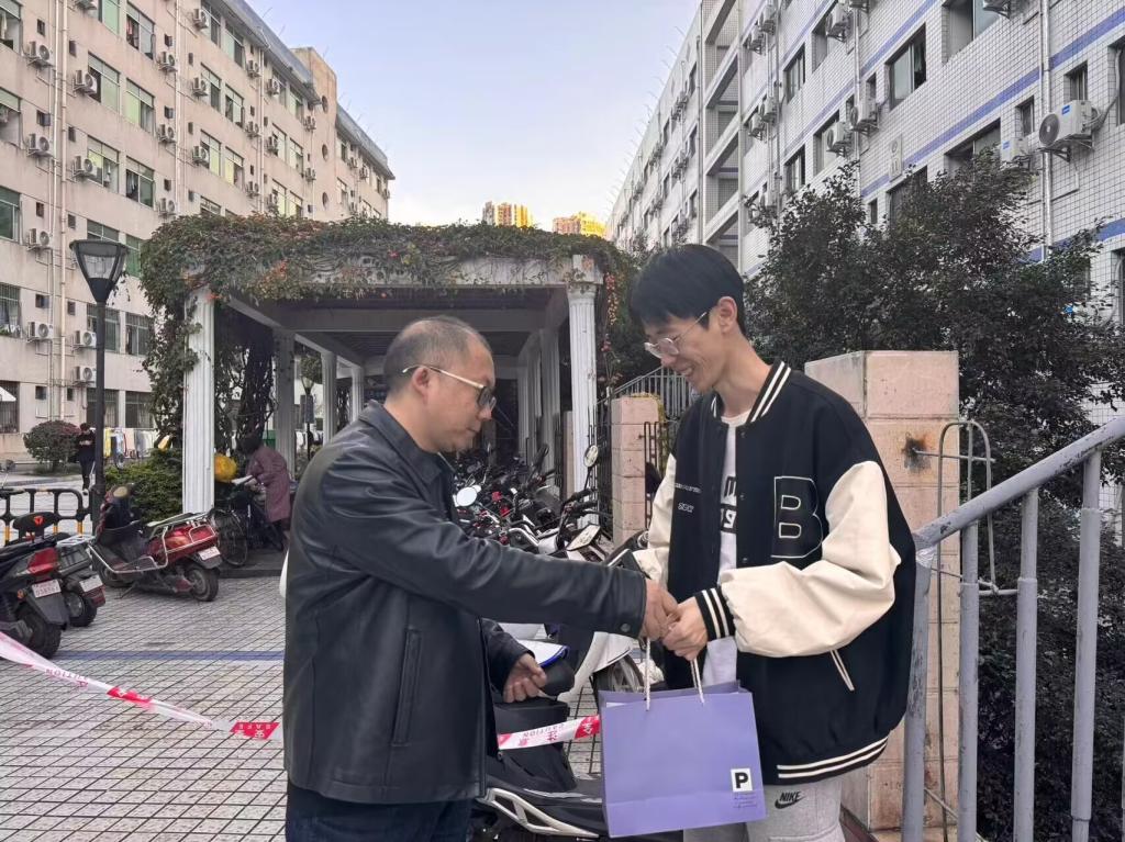 学院老师为考研学生一一分发“暖心礼包”,“礼包”包含寓意万“柿”如意的柿子、全“力”以赴的士力架、运势“旺”达的旺仔和由辅导员署名的专属祝福明信片。同时,老师们还细心询问了备考学子们的复习进度和心理状态,鼓励他们端正心态、克服困难、努力坚持,以必胜的信念面对挑战,以最好的状态迎接考试。