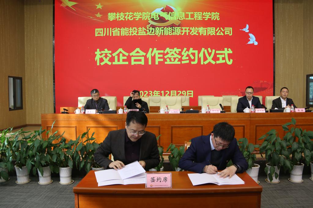 12月29日上午,beat365电气信息工程学院与四川省能投盐边新能源开发有限公司成功举行“校企合作协议书”签约仪式。电气信息工程学院、双创学院院长赵相瑜,电气信息工程学院党委副书记唐宇、副院长廖其龙,四川能投风电盐边公司党支部书记、执行董事唐红强,总经理邓国琦、副总经理陈宏出席仪式。