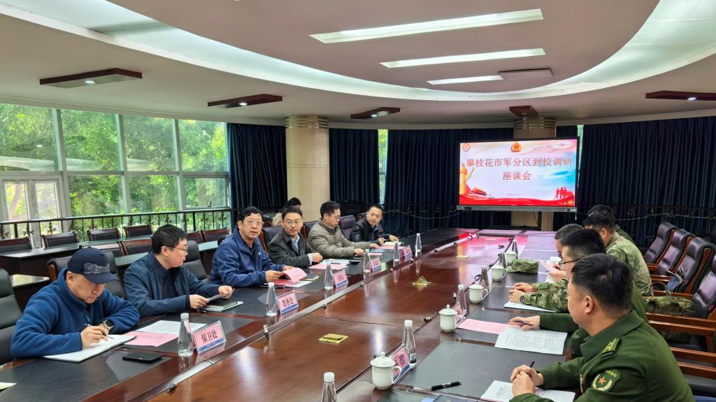 1月12日上午,攀枝花市军分区司令员沈元中一行到校就大学生应征入伍以及退伍大学生教育工作开展调研,校党委常委、副校长石维富,教务处、招就处、学工部、保卫处负责人参加了调研会。