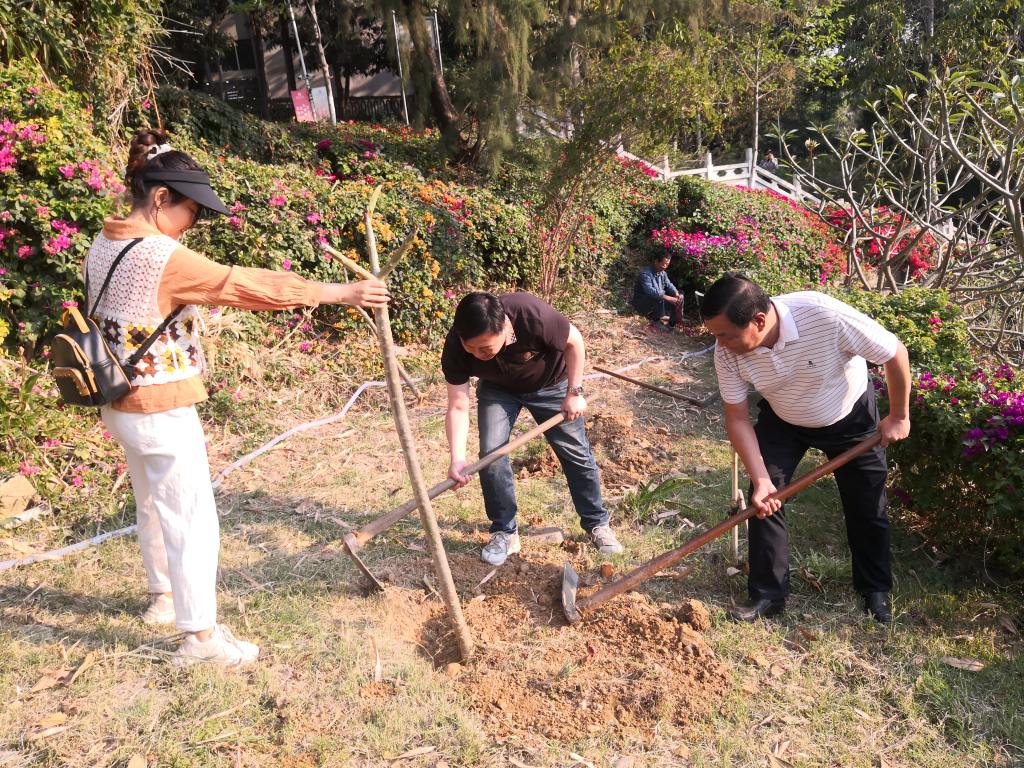 为确保本次义务植树活动顺利开展,资产公司根据学校用地规划和绿化工作安排提前部署,认真考察,挑选位于学校东门鸡蛋花基地平台的一处空地做为植树区域,测量确定植树间距,同时精心筛选来自农学院郑毅老师赠送的鸡蛋花苗,配置植树工具,调配辅助人员,全力配合学校开展义务植树活动。