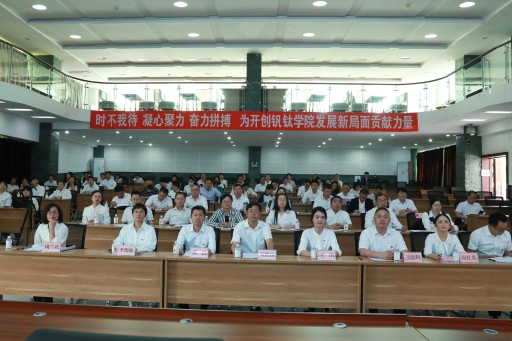 学院党委负责人代表上一届委员会作了题为《时不我待、凝心聚力、奋力拼搏,努力开创钒钛学院发展新局面》的工作报告。报告从加强党的建设、人才培养、专业学科建设、课程建设、师资队伍建设、科研和服务地方工作等方面全面客观回顾了学院党委过去五年的工作,分析了工作中存在的不足,并对未来五年的主要工作任务和发展目标进行了展望。参会党员认真聆听并通过了报告。