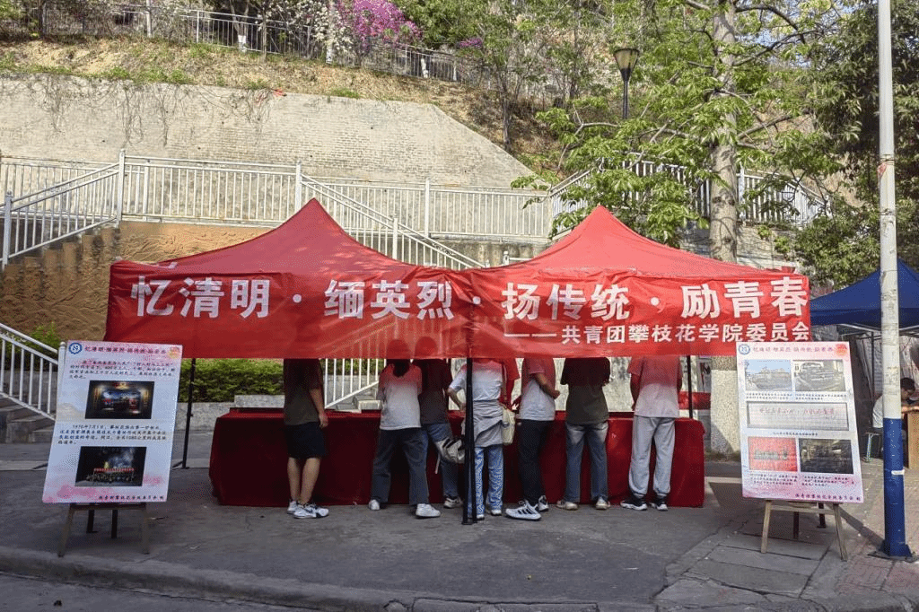 以手工传情,寄清明哀思。校团委在思源坡前摆点“铭记英雄先烈 传承三线精神”宣传展板,梳理三线建设时间线,铭记历史、致敬英烈。学生参与手工制作小百花、三线记忆拼图大赛、给已故亲人的一封信等活动,并获得青团、菊花茶等纪念品。