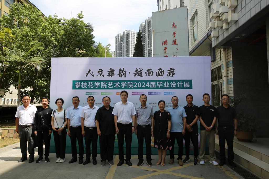 5月30日,艺术学院2024届毕业设计展览在第三教学楼开幕。校党委常委、副校长张旭辉,越西县副县长蹇丹等领导出席并参观了此次展览。