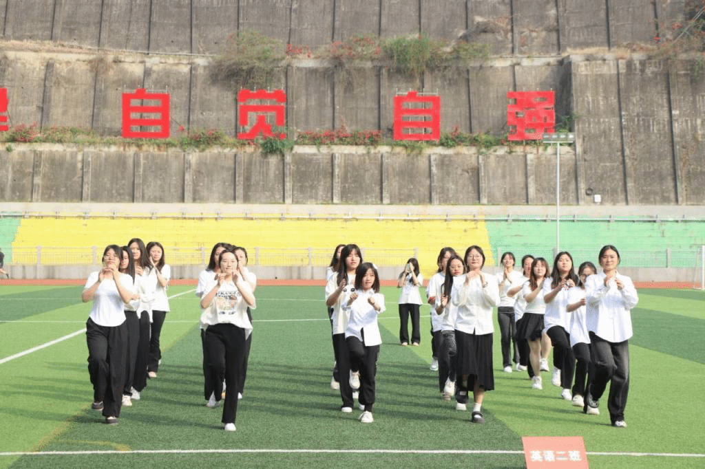 为了培养学生的音乐感知能力、协调能力和团队合作意识,丰富学生的课余文化生活,外国语学院于6月3日在本部足球场成功举办了以“争做阳光自律攀大人,韵出青春健康体育魂”为题的韵律操比赛。