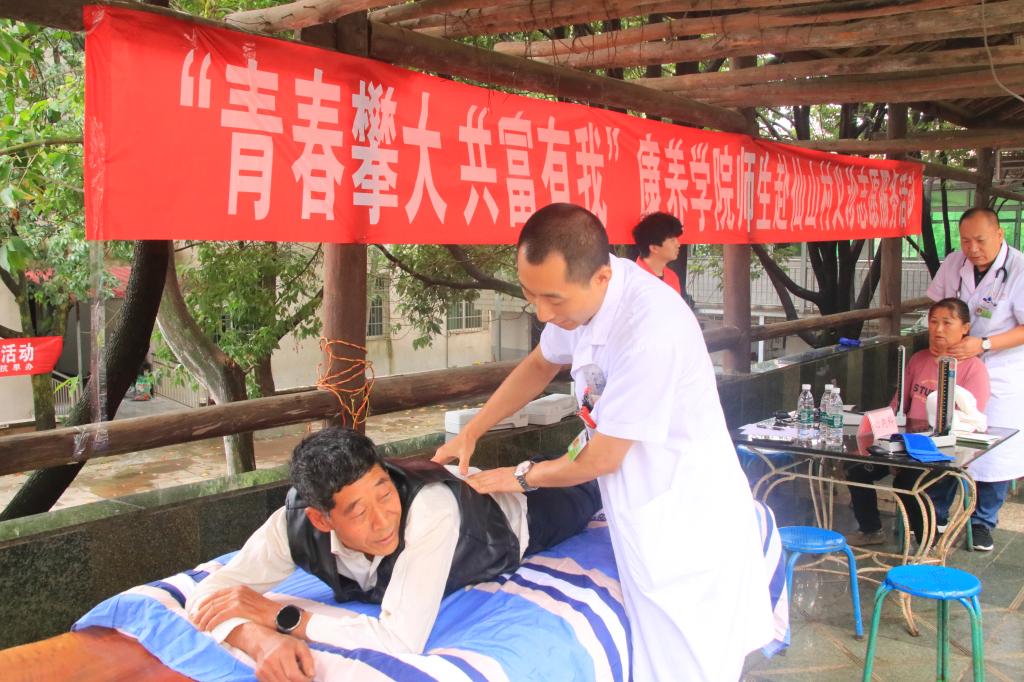 为了更好的服务仙山村村民,本次义诊邀请了来自学校康养学院和附属医院中医科、心内科、妇产科、儿科、骨科、针灸推拿科等专业的专家现场义诊。义诊队伍到达仙山村,村民积极前来咨询病情、接受诊治。义诊医生们提供了细致的诊疗服务。康养师生为前来就诊的民众进行测量血压、艾灸推拿、抚触按摩、健康宣教等志愿者服务,并进行了“八段锦”展演、心肺复苏等急救技能演示,带领村民积极参与体验、咨询和学习,助力增强民众的养生保健和急救意识。活动受到当地村民的热烈欢迎及一致好评。