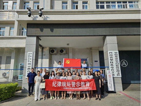 党纪学习教育开展以来,生化学院(农学院)把开展党纪学习教育作为重要政治任务,加强统筹谋划,精心组织实施,丰富学习形式,强化警示教育,注重融入日常和学用结合。2024年6月19日,全体教师党员走进四川省攀枝花市看守所,开展“纪律规矩警示教育”主题党日活动。