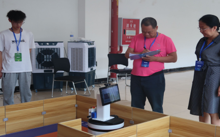 开幕式后,在产教融合大楼附楼二楼开展分组赛事。比赛分为服务机器人应用组与工业移动机器人应用组,选手们在指导老师的悉心帮助下,经过多次定点调试,在短时间内不断优化问题,顺利完成一个机器人项目的开发,展现出大学生的学术风采。