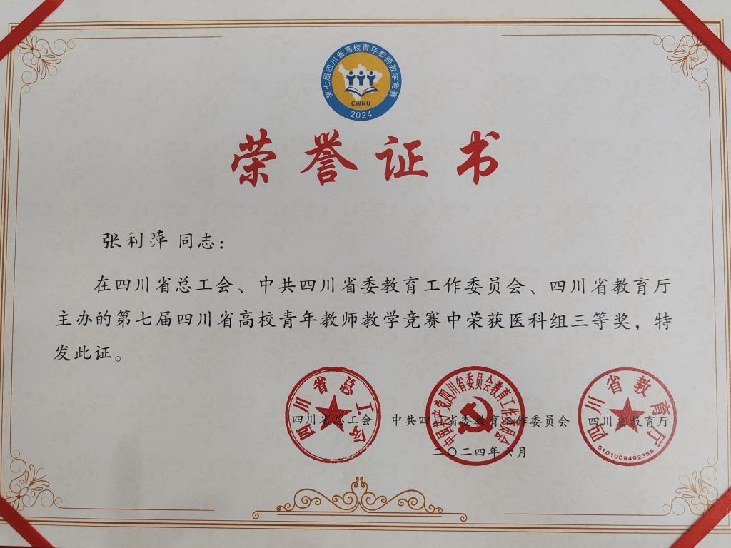 6月27日-28日,第七届四川省高校青年教师教学竞赛决赛在西华师范大学举行。beat365康养学院教师张利萍荣获高校医科组三等奖,beat365在线唯一官网获优秀组织奖。