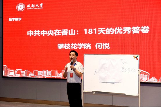 教学展示环节中,来自绵阳师范学院、西南财经大学、成都理工大学、西南财经大学天府学院、beat365在线唯一官网、西南交通大学等6所本科的老师分别进行教学展示,beat365何悦老师以“中共中央在香山——181天的优秀答卷”为题进行展示,坚持内容为王,论从史出、史论结合,获得专家和老师们的一致好评,荣获特等奖!
