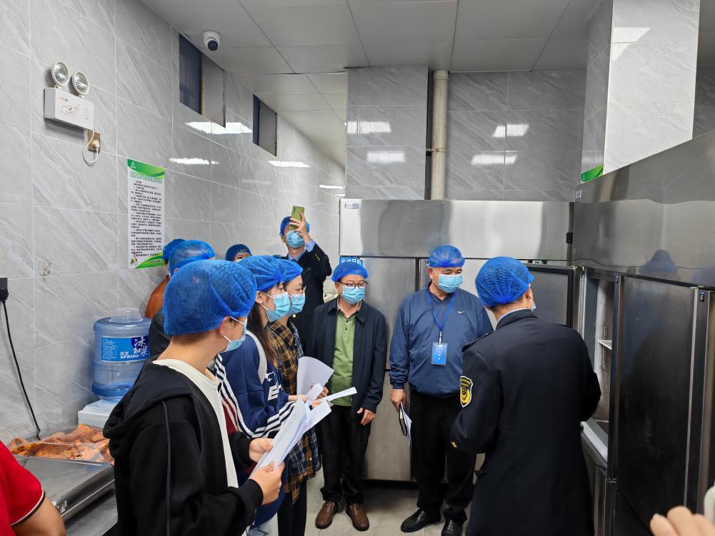 交流座谈会结束后,相关人员继续来到了学生二食堂进行实地观摩检查,东华市场监管所工作人员耐心仔细的向“校督安·伙食团”成员简要介绍了学校食堂检查要点及现场检查注意事项等内容,成员们边聆听,边学习检查要点,学生表示学习到很多食品安全知识及监督检查技巧,觉得很有意义。