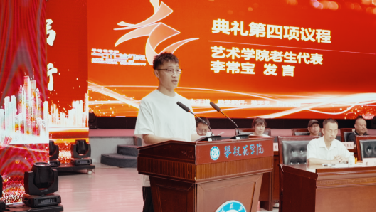 老生代表李常宝同学,代表着学院的全体师兄、师姐们,向新生分享了他们在艺术学院的成长与收获,建议师弟、师妹们要“勤奋学习,勇于实践;独立思考,团队协作;珍惜友谊,拓宽视野。”