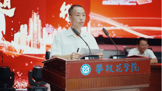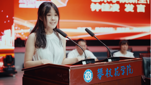 校友代表黄昰以“成为一道光,照耀更多人”为主题,结合自己在攀枝花的学习成长经历,分享了自己“来到攀枝花”“爱上攀枝花”“留在攀枝花”的三段故事,希望新同学努力成为一道光,照耀更多人。