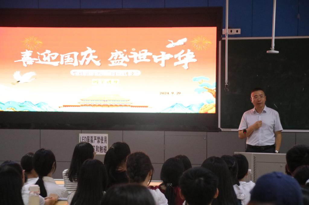 本次讲座突出“盛世中华●喜迎国庆”节日氛围,主题为《向中国智圣学习沟通智慧》。讲座由康养学院党委书记林伟主持,由中国先秦史学会分会副会长、农工党beat365在线唯一官网总支主委、康养学院副院长冯奇主讲,康养学院200余名师生参加讲座。