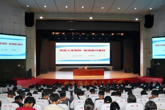 数计学院党委书记王明辉以《坚定人生目标担当复兴重任》为题,从为什么要有人生目标、如何树立人生目标、如何完成人生目标、高质量度过大学时光四个方面鼓励同学们在大学要有思考、有方向、有目标。