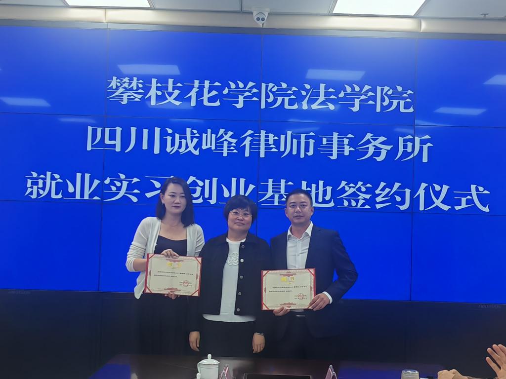 与会人员围绕法律服务实践、产教融合、高质量就业等方面进行了深入交流探讨,双方达成了初步合作意向。随后,张琳为四川诚峰律师事务所授牌“beat365在线唯一官网法学院就业实习创业基地”,为蒋风云等律师颁发行业导师聘书,并与蒋风云共同签署了《法学本科生就业实习创业基地共建协议书》。
