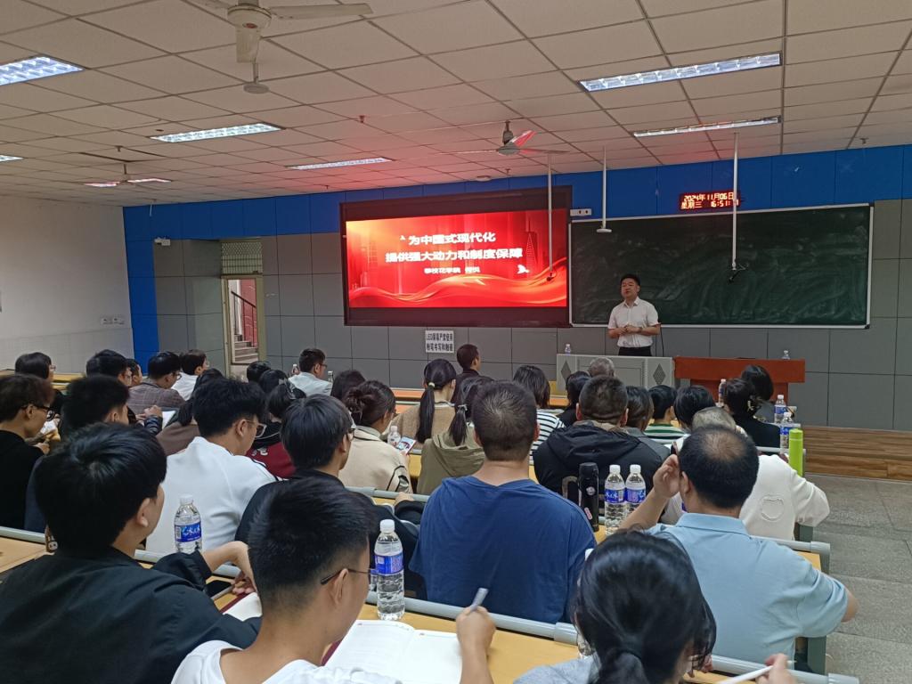 在党课过程中,何悦副教授以其深厚的理论功底和饱满的精神,深入浅出地解读了二十届三中全会的核心内容和实质。他详细介绍了改革开放前后全会的伟大历史变革,强调了二十届三中全会是党中央在以中国式现代化全面推进强国建设,民族复兴伟业的关键时刻召开的一次十分重要的会议,详细解析了会议的议程、《决定》的起草、框架布局、内容特点等。此次党课脉络清晰、重点突出、内容详细,很好地帮助了师生们准确理解和全面把握党的二十届三中全会精神。