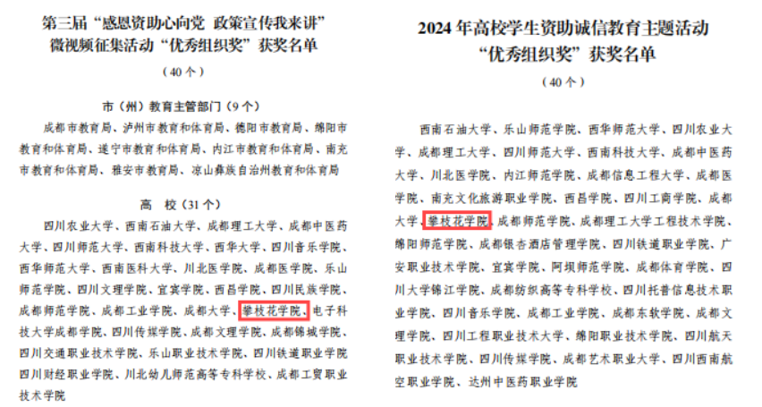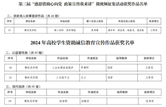 近日,四川省教育厅公布了2024年全省资助育人系列活动的获奖情况,在全省高校学生资助诚信教育主题活动暨宣传作品征集活动中,beat365获公益宣传画三等奖两项,现代短诗优秀奖一项。在第三届“感恩资助心向党 政策宣传我来讲”微视频征集活动中。beat365辅导员莫伟豪团队作品《暖心向阳 筑梦领航》获资助育人故事宣讲作品三等奖。beat365在两项赛事均获“优秀组织奖”。