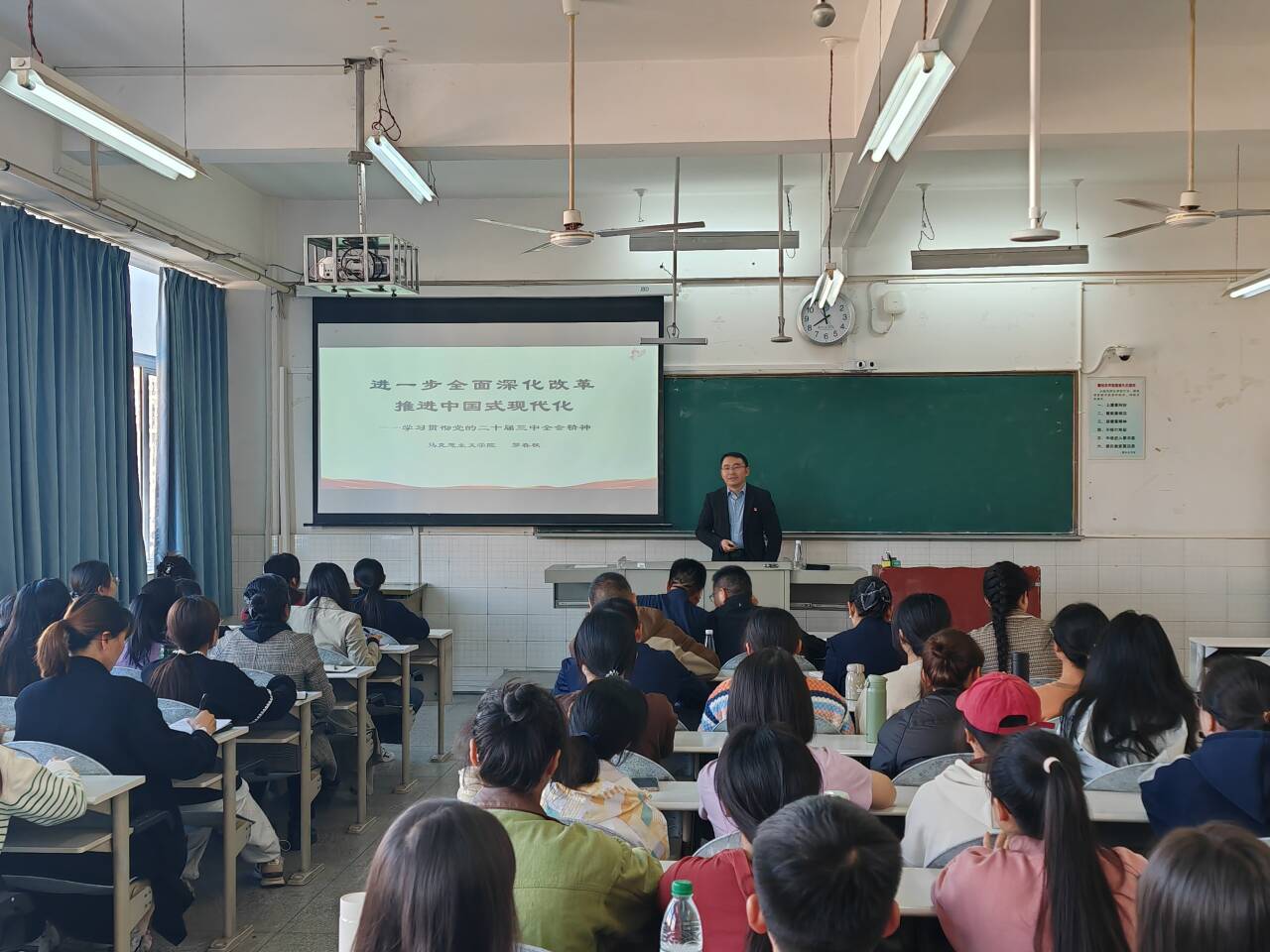 罗春秋还指出,习近平新时代中国特色社会主义思想为全面深化改革提供了根本遵循。我们要坚持稳中求进工作总基调,围绕总目标,把握重大原则,确保改革始终沿着正确方向前进。他的精彩宣讲赢得了师生们的热烈掌声,大家纷纷表示深受启发,将把全会精神转化为推动学校发展的强大动力。
