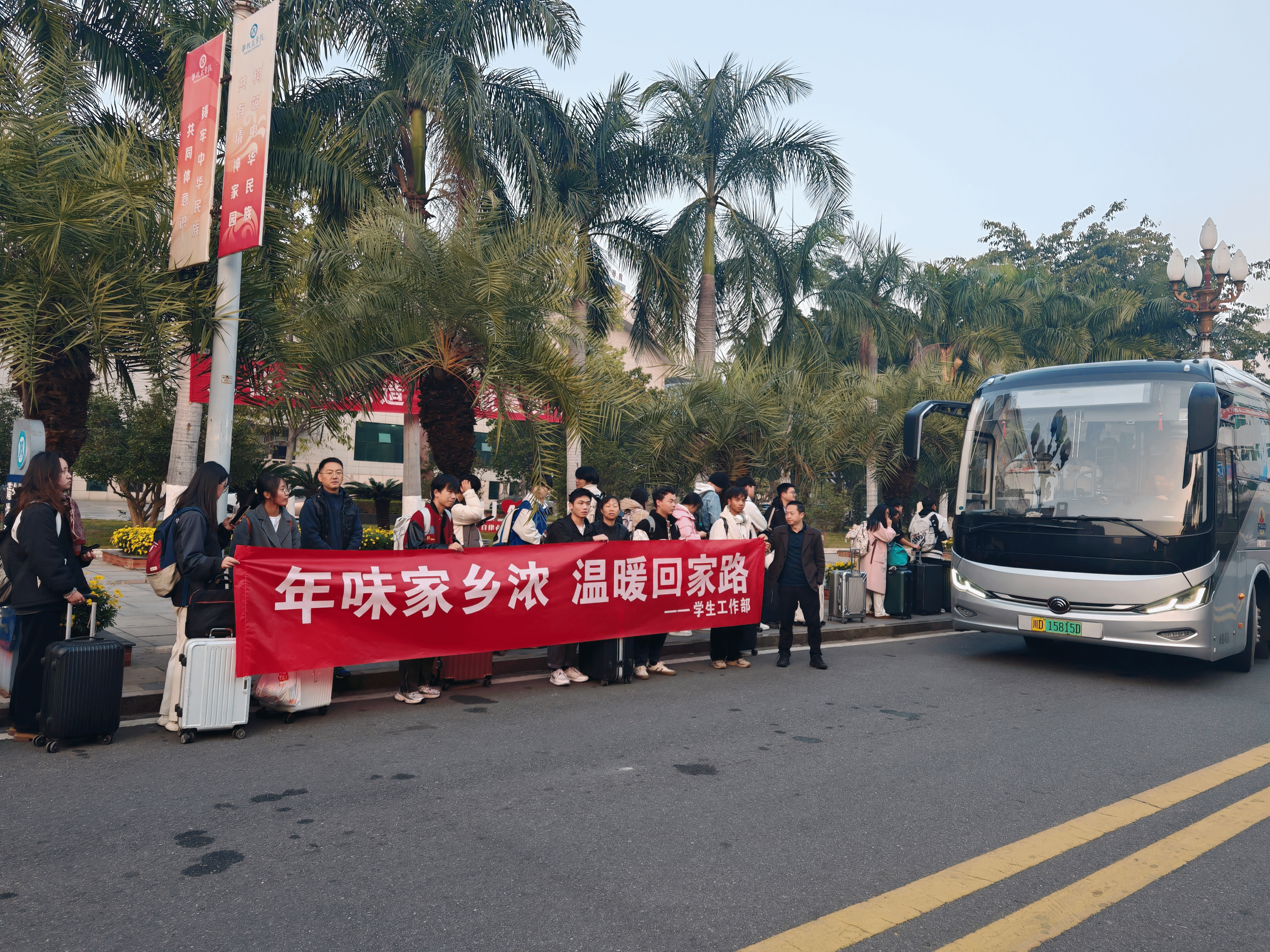 学校积极对接公交公司为返乡学生开通定制公交,配合交警加强校园黑车管控,新的一年主动作为,用最暖心、最贴心的举措服务学生平安顺利返乡。截至2025年1月4日,共计发车一百余趟,3503名学生准时安全抵达南站。