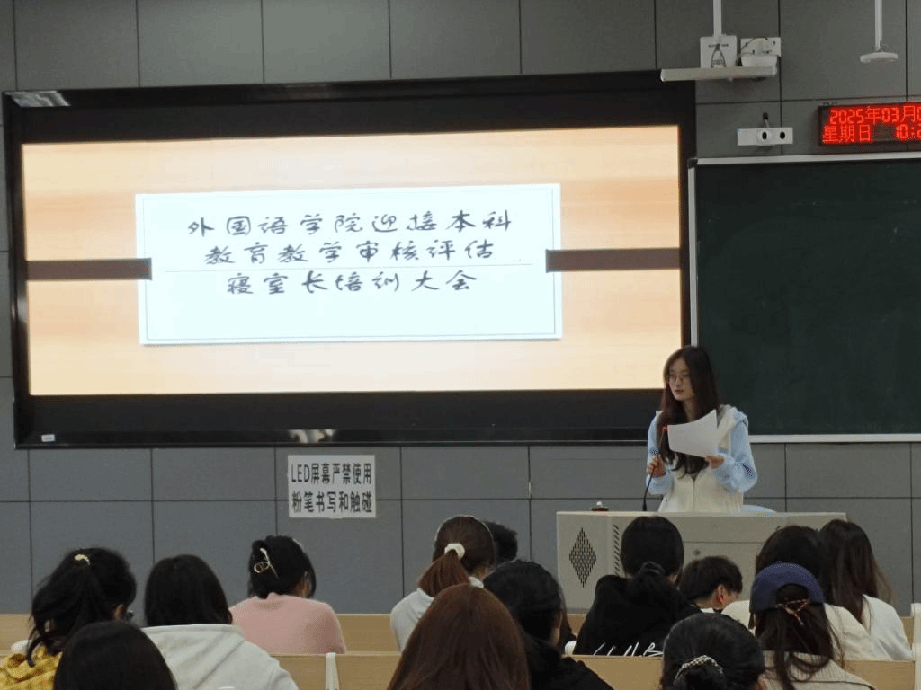 此次培训大会的召开,标志着外国语学院迎接本科教育教学审核评估工作进入全面攻坚阶段。与会寝室长纷纷表示,将认真贯彻落实会议精神,以更高的标准、更实的举措做好宿舍管理工作,为学校顺利通过本科教育教学审核评估贡献力量。