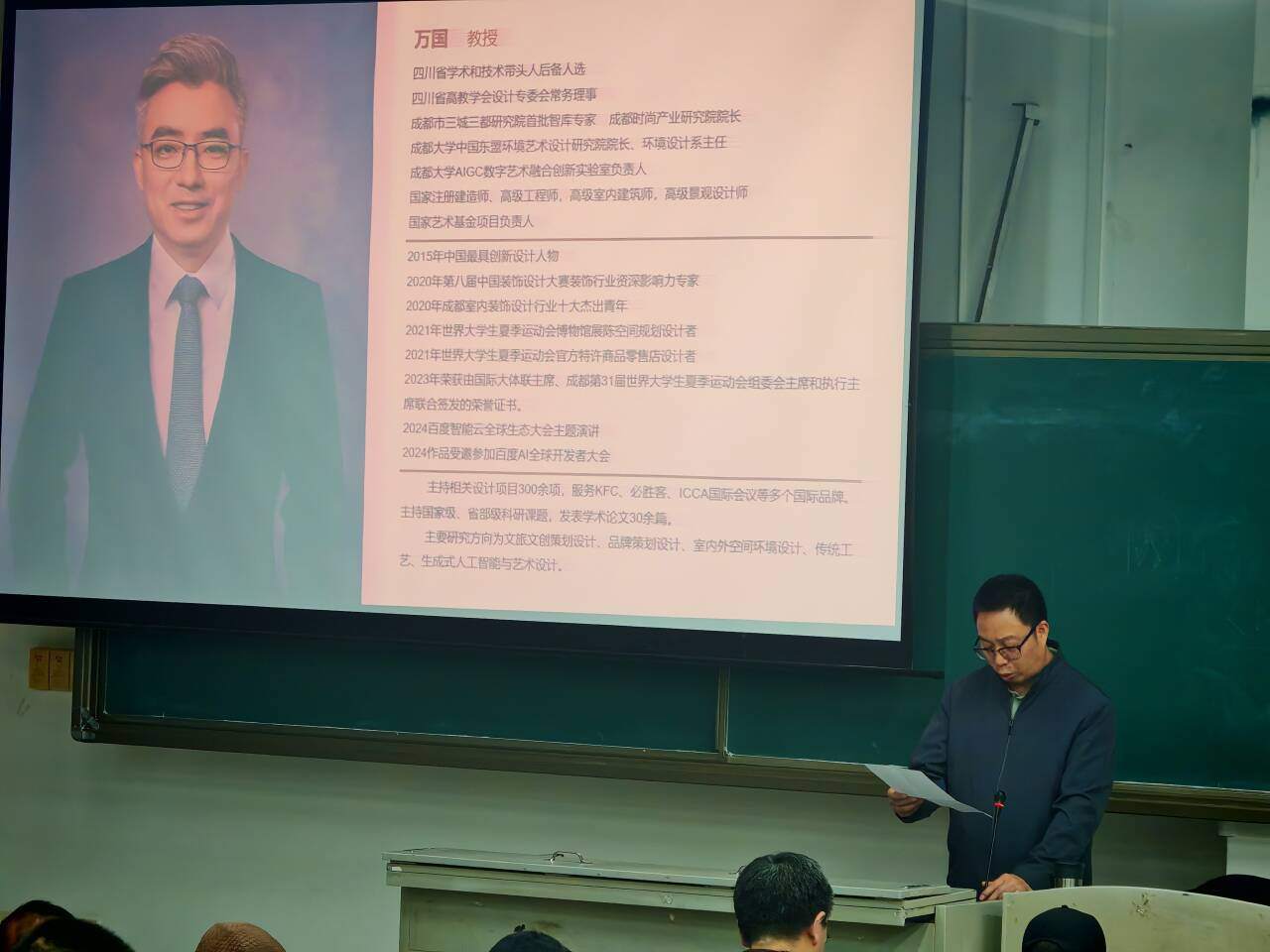 3月17日晚,艺术学院环境设计教研室特邀成都大学中国东盟环境艺术设计研究院院长、环境艺术系主任、AIGC数字艺术融合创新实验室主任万国教授莅临我院,为师生带来了一场题为“AI赋能艺术创作与创新设计”的学术讲座。讲座由艺术学院党委副书记孙念祥主持,艺术学院200多名师生参与,现场座无虚席,气氛热烈。