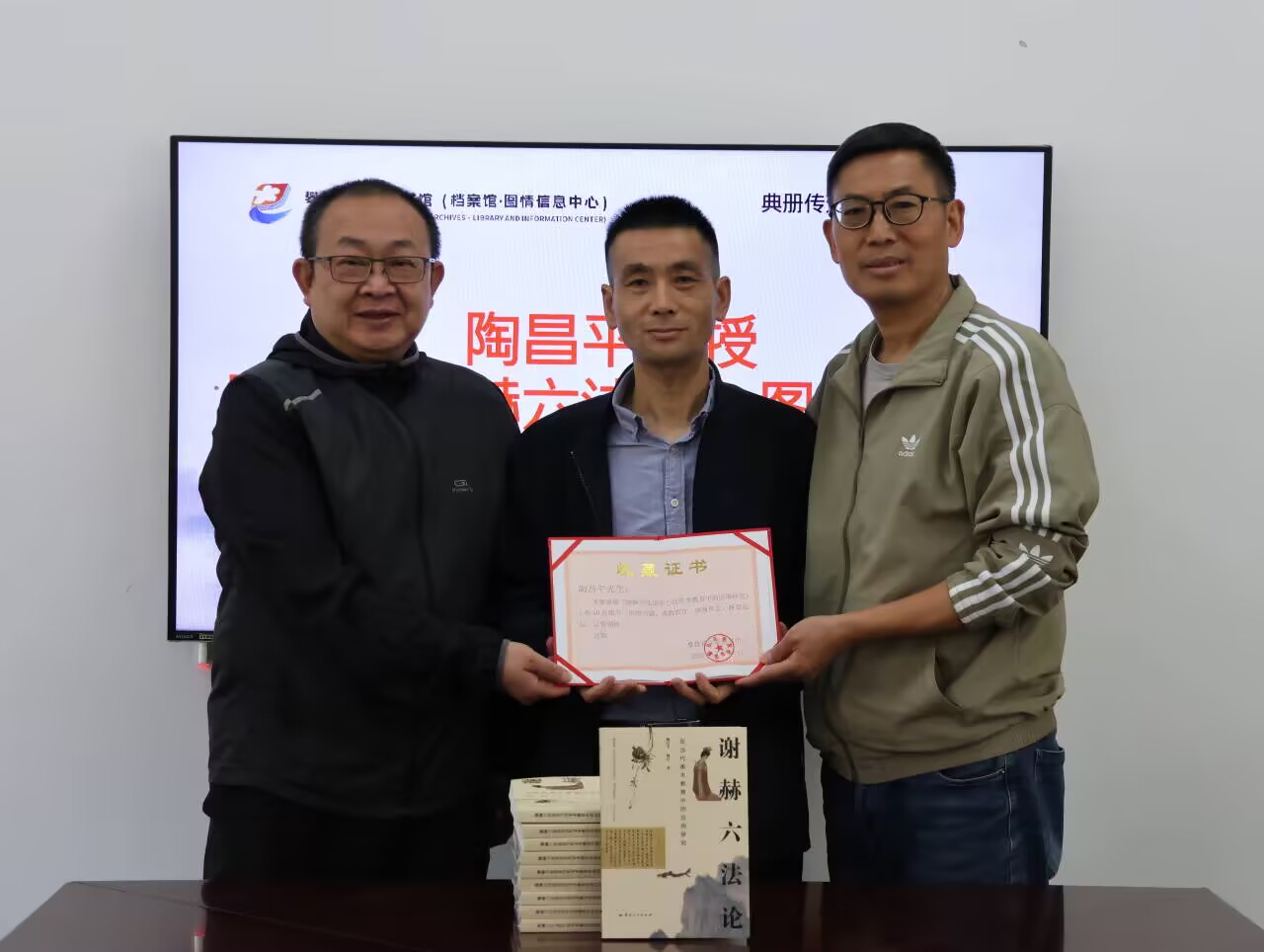 3月31日,beat365艺术学院陶昌平教授向图书馆捐赠本人专著《谢赫六法论在当代美术教育中的应用研究》。图书馆在一楼会议室举行了捐赠仪式,艺术学院院长孙载斌、图书馆党支部书记、副馆长何中勇出席仪式,艺术学院和图书馆相关科室负责人参加仪式。馆长王欢主持仪式。