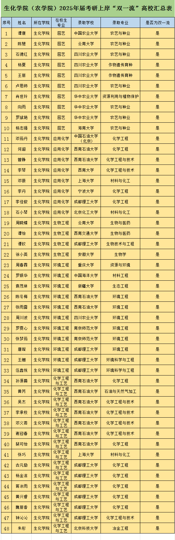 研峰折桂续华章,生化学子竞出彩!生化学院(农学院)2025届考研学子喜报频传,101名学生一战成“硕”。2025届毕业人数总人数301人,考研报名人数为186人,其中考研上线人数为108人,上岸人数为101人,考研上岸率为33.55%,再创学院历史新高。