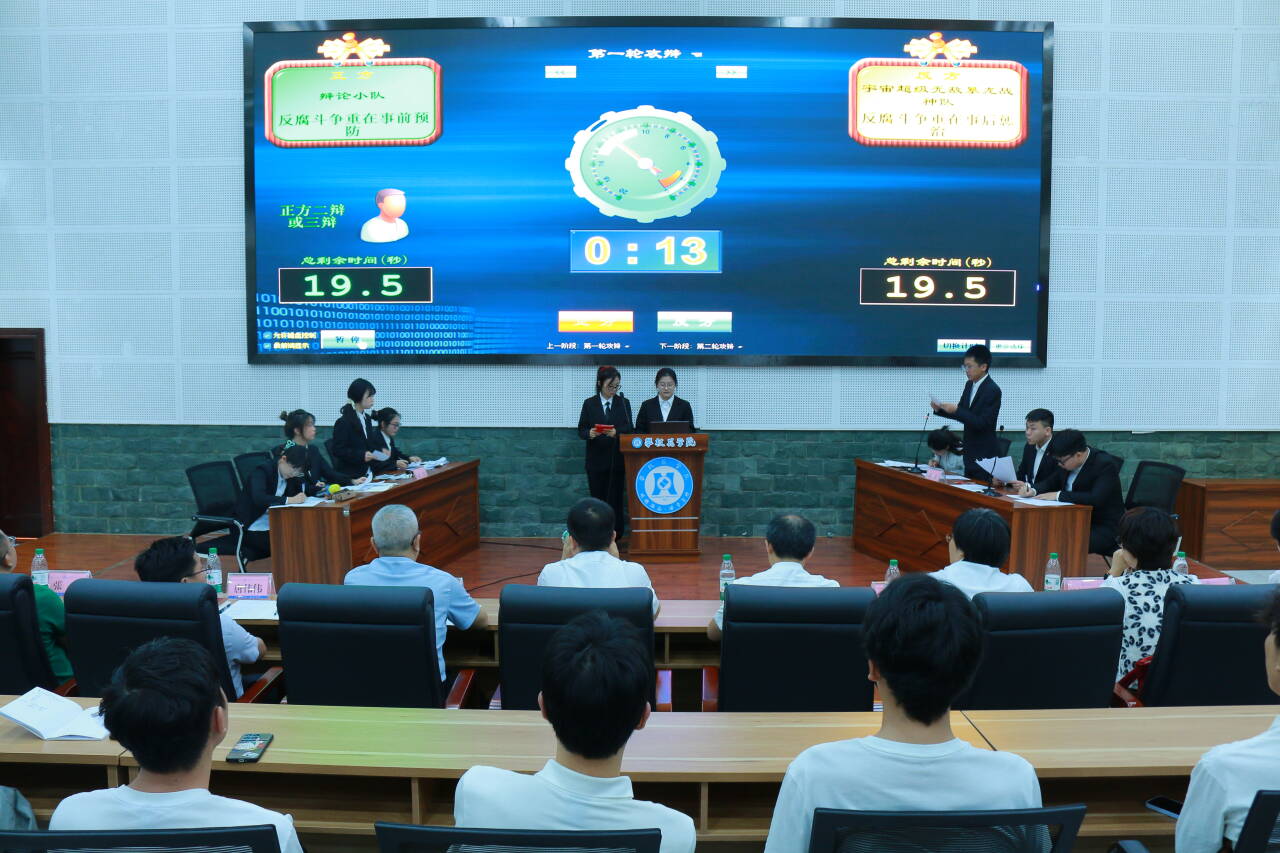 以辩促学,辩中解惑。此次决赛共有4支队伍,分为两组,双方辩手分别围绕 “廉洁建设重在制度约束 vs 廉洁建设重在道德自律”“反腐倡廉预防更有效 vs 反腐倡廉惩治更有效” 展开辩论。在辩论中,正反双方辩手针锋相对、有理有据,提高了大家对廉洁文化重要意义的认知。在比赛过程中,双方辩手表现出缜密的逻辑思维、犀利的语言表达和默契的团队配合,经过两轮角逐,最后,基础医学院的代表队荣获一等奖,经管学院的代表队荣获二等奖,法学院的代表队荣获三等奖,同时评选出两位最佳辩手和两位优秀辩手。