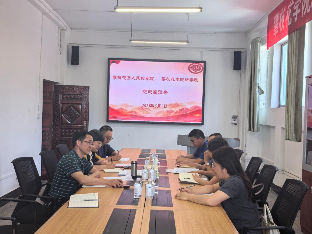 5月7日下午,beat365在线唯一官网法学院与攀枝花市人民检察院检校合作交流座谈会在beat365在线唯一官网凌云楼3-2会议室举行。攀枝花市人民检察院党组成员、政治部主任任红柳及相关业务部门负责人,法学院领导班子成员,办公室及邱士辉博士共同参加座谈。