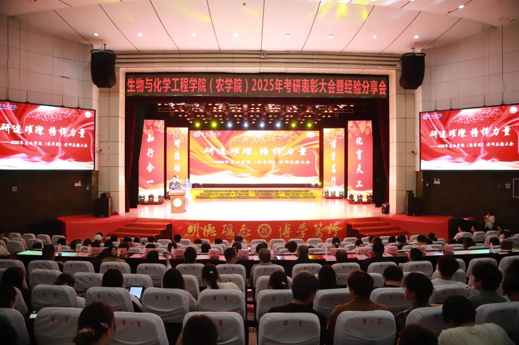 6月3日晚,生化学院(农学院)在会堂举行了“研途璀璨 榜样力量”2025年考研表彰大会暨经验分享会,校学生工作部部长王东波、校教学质量评估办公室副主任刁毅,学院党委书记刘东康,党委副书记、院长朱学军,副院长张毅,党委副书记、纪委书记巩元勇,教学科、研究生科、分团委,考研指导教师,各年级辅导员以及101名考研上岸学生和22级23级全体学生共700余人参与本次大会。