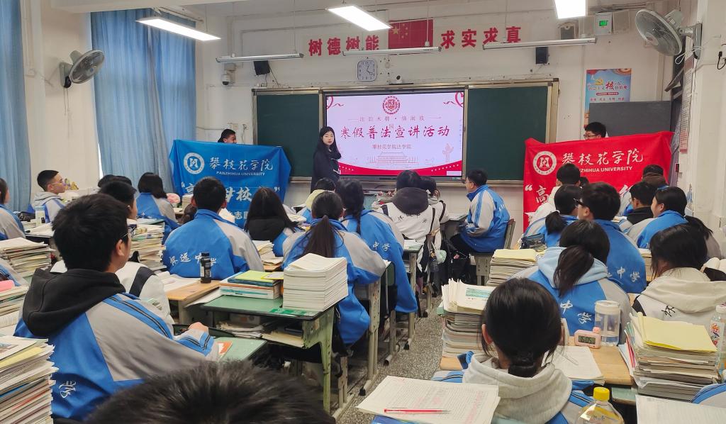 图为返高中母校寒假普法活动现场