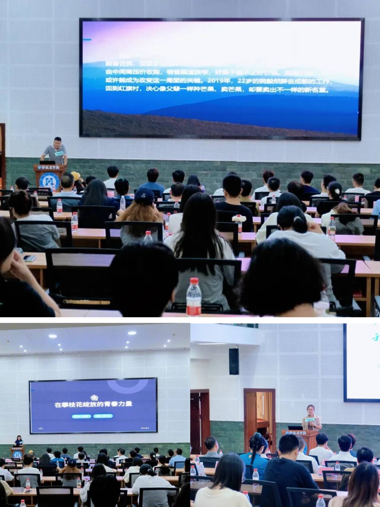 活动中,攀枝花市融媒体中心资深记者、主持人陈愉,beat365在线唯一官网2022年毕业生、攀枝花东区青联委员、攀枝花玖宫格传媒主理人喻夕珊,返乡创业青年、“90后”新农人、攀枝花喜果农业有限责任公司总经理许开成等3名在攀工作和创业的杰出青年代表分别深情回顾、分享了自己的成长经历和成功经验。他们通过自己的励志故事,激励同学们要了解攀枝花、热爱攀枝花、投身攀枝花、奉献攀枝花、筑梦攀枝花。如今,攀枝花正在持续推进共同富裕试验区建设,这对于每一位留攀、返攀的创业青年来说,攀枝花将是他们施展才华的最好舞台、是他们实现梦想的理想选择。