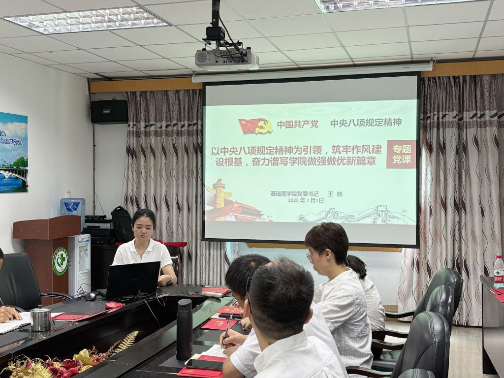 71日下午,学院党委在笃行楼三楼会议室开展“政治生日”专题会。党委书记王鹃向教师党员赠送“政治生日”贺卡和《中国共产党纪律处分条例》红色书籍,希望大家铭记入党初心,坚守纪律底线;党组织书记与党员们谈心谈话并送寄语;党员代表发表政治生日感言;王鹃讲授《以中央八项规定精神为引领,筑牢作风建设根基,奋力谱写学院做强做优新篇章》专题党课;组织员宣读《2025年基础医学院“大德大爱大师 承诺亮诺践诺”通知》,安排党员教师为学生办实事工作。