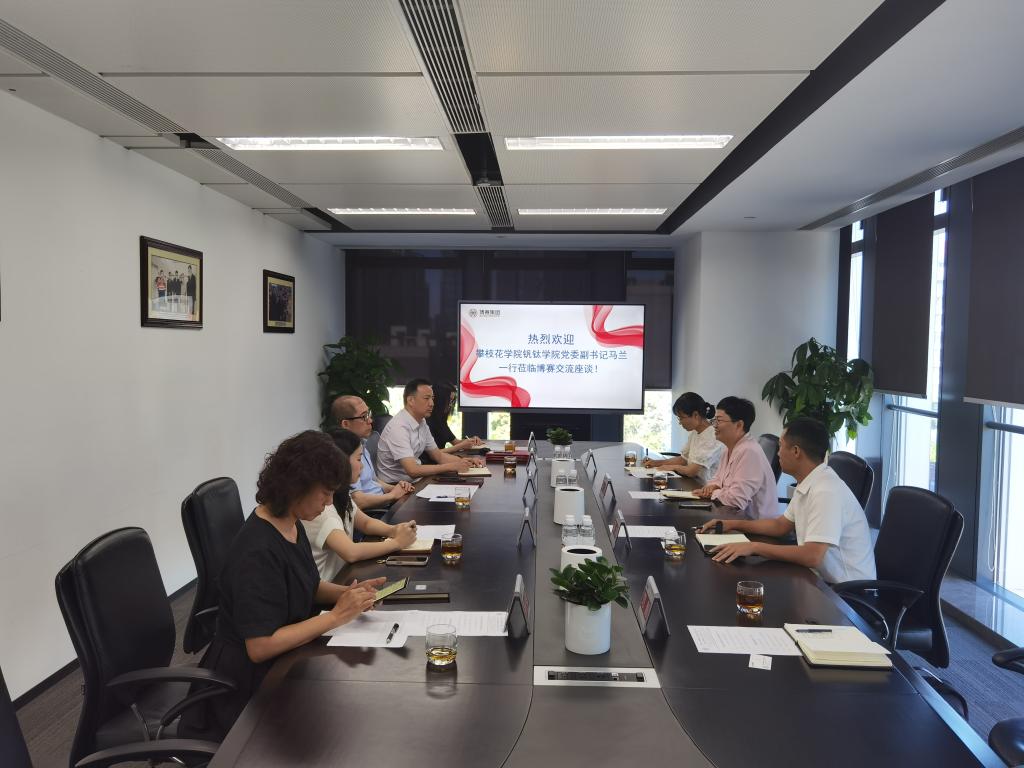 8月22日,蒋志强院长带领团队率先抵达乐山,走访四川德胜集团钒钛有限公司。座谈会上,双方围绕“人才培养与输送”“产教融合深化”“科研合作与创新”等核心议题展开深入洽谈。蒋志强院长详细介绍了学院近年来在钒钛领域专业建设、人才培养模式改革及科研成果转化等方面的进展,表达了与企业共建实践基地、联合攻关技术难题的合作意愿。四川德胜集团钒钛有限公司副总经理徐瑜对学院人才培养质量给予肯定,并结合企业生产经营实际,就课程体系优化、实践能力培养等方面提出宝贵意见,为双方后续精准合作明确了方向。