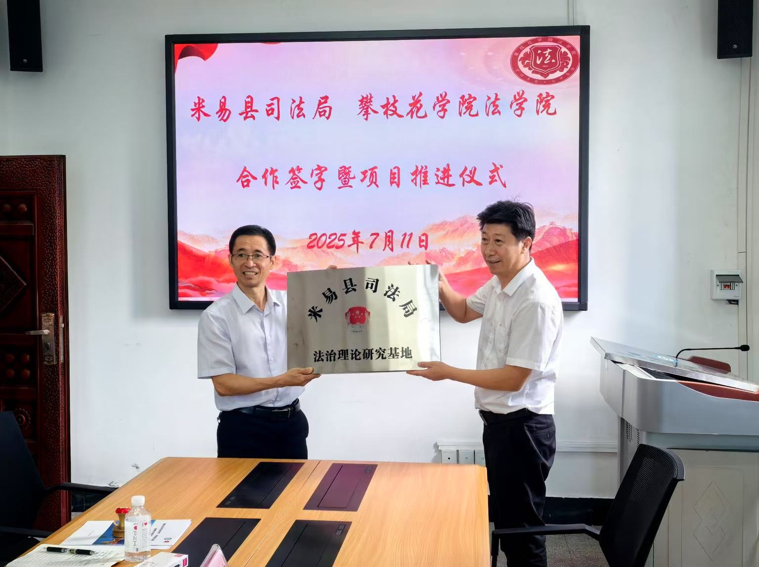 签约仪式后举行了授牌仪式。罗文颖局长为法学院授予“米易县司法局法治理论研究基地”牌匾,杨开华院长为米易县司法局授予“beat365在线唯一官网法学院教学实践基地”牌匾。这标志着双方合作进入了实质性阶段,将为推动米易县法治建设和培养优秀法律人才发挥积极作用。