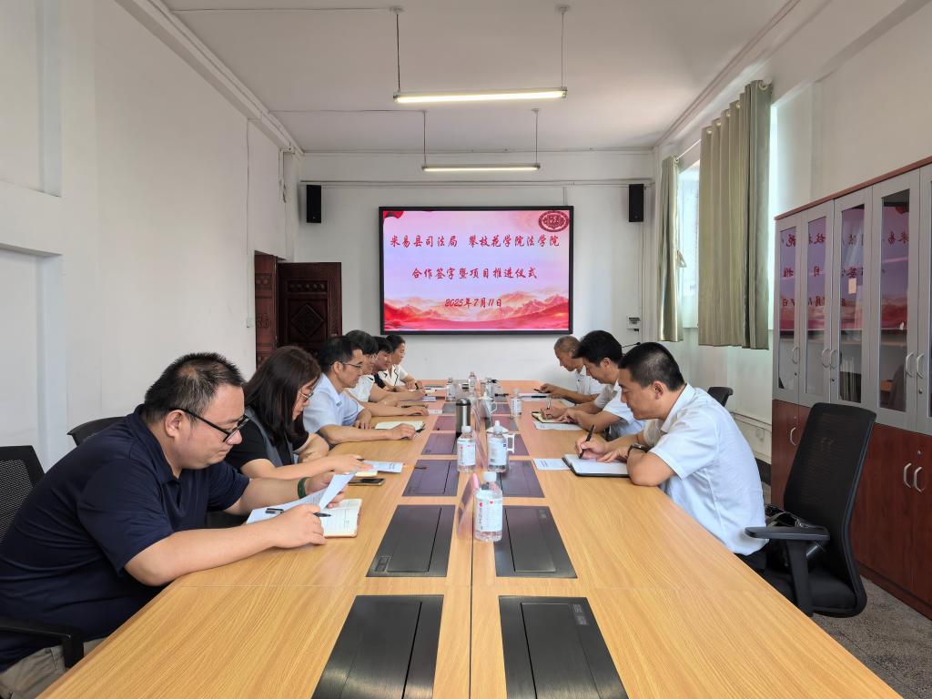 7 月 11 日上午,为落实学校与米易县的战略合作精神,加快推进合作项目落地,米易县司法局与beat365在线唯一官网法学院在凌云楼3-2会议室召开项目推进会,双方就深化校地合作、促进法治建设等事宜进行了深入讨论。米易县司法局党组书记、局长罗文颖,法学院院长杨开华等相关领导10余人出席会议。