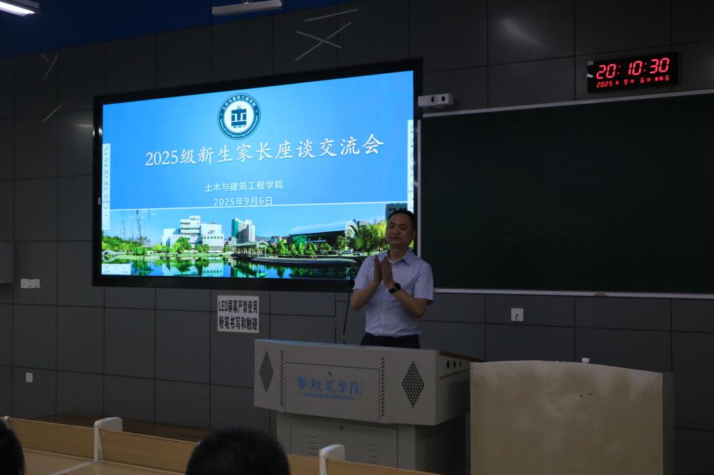 96日晚,土建学院在尚学楼114教室召开2025级新生家长座谈会,学院领导班子成员、各科室负责人、教研室主任、骨干教师代表及2025级新生家长代表,共计150余人参会。会议由学院党委副书记、纪委书记付建主持。