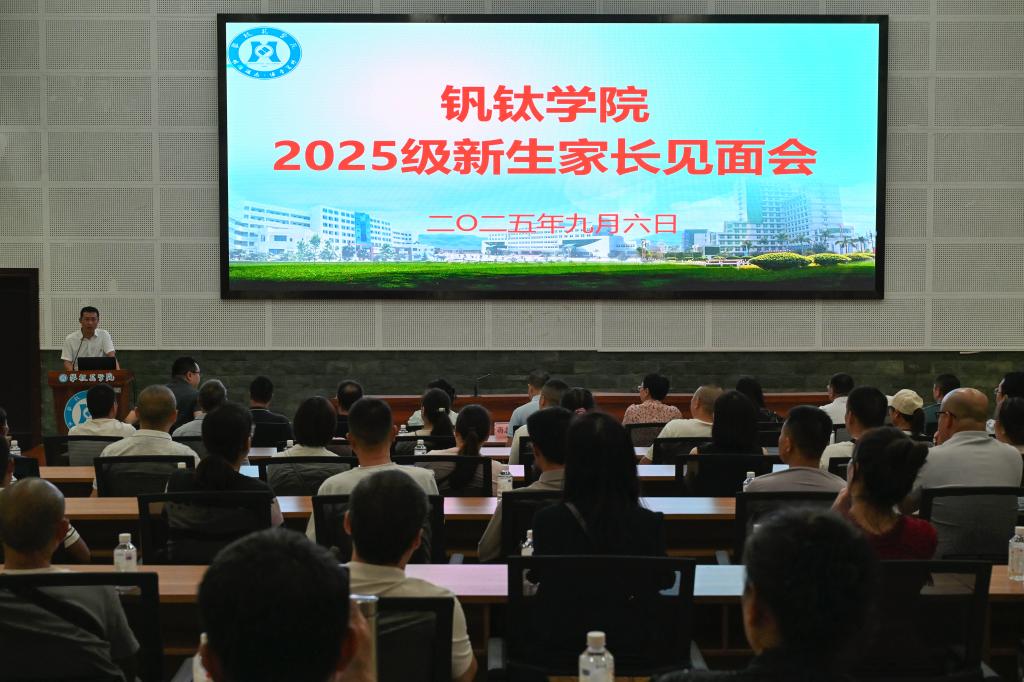 9月6日晚,钒钛学院于博雅厅召开2025级新生家长座谈会。院长蒋志强,党委副书记马兰,党委副书记、纪委书记蒲洪,各专业负责人及学生科老师出席座谈会与180余名学生家长深入交流。