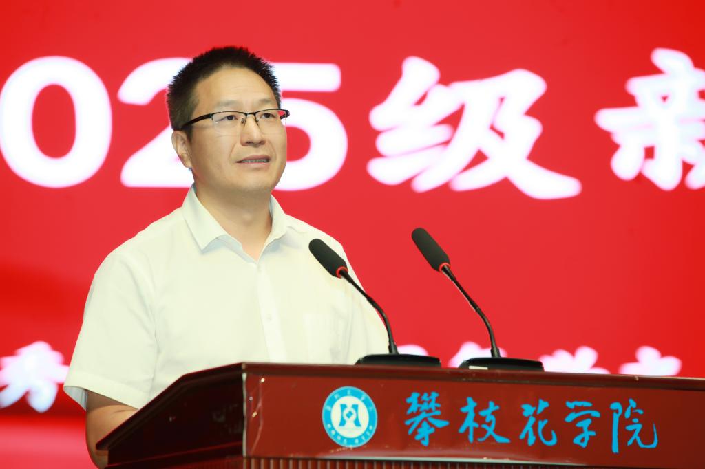 李兴贵以《以大地为纸、以工程为笔,共绘新时代青春美好画卷》为题发表讲话,围绕“敬畏、责任、创新、坚韧”四个关键词,寄语新生夯实专业基础、坚守工程伦理、勇担时代使命,并详细阐述了大学四年的“成长路线图”与“能力清单”,为新生规划大学生活指明方向。
