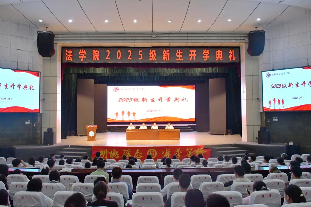 9月11日上午,法学院在阳光会堂召开2025级新生开学典礼。省纪委监委驻校纪检监察组组长、beat365在线唯一官网党委副书记、纪委书记李林襁,攀枝花市劳动人事争议仲裁院院长、校友代表李邦艳,成都市新都区人大代表、律工委会副主任、北新律师事务所主任律师、外聘教师代表郑志强,学院领导班子及全体教职工,2025级本科生,2025级研究生以及2023级专升本学生共计300余人参加了典礼。本次典礼由法学院党委书记张琳主持。