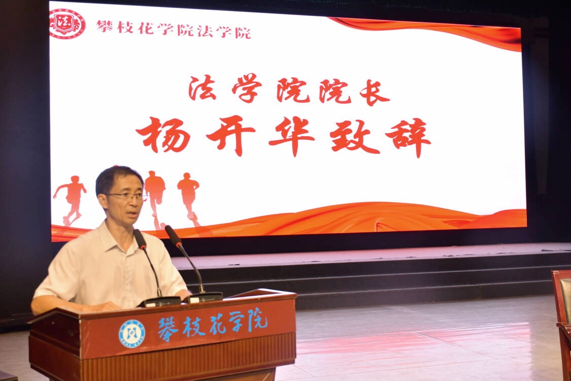 典礼伊始,法学院全体师生起立,奏唱国歌。法学院院长杨开华发表致辞,他代表学院向全体新生致以热烈欢迎,并系统介绍了法学院的发展历程、学科建设成果、核心办学理念与办学层次,让新生对学院有了全面且深入的认知。随后,他对新生提出殷切期望与具体建议:既要坚持锻炼、强健体魄,也要钻研专业、珍惜时光,将学识转化为能力。同时鼓励同学们常去图书馆,利用文献拓宽视野,为未来奠基。