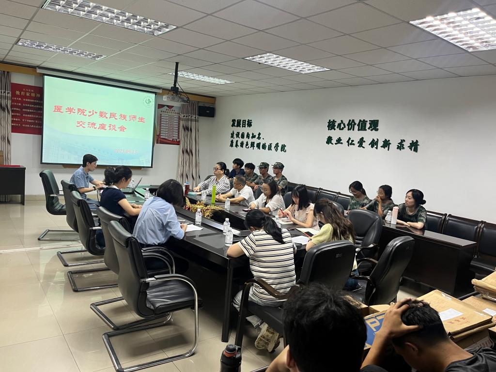 9月15日晚,医学院在东华山校区笃行楼三楼会议室召开“医心凝聚团结情,筑梦共话成长路”少数民族师生交流座谈会。基础医学院党委书记王鹃,党委副书记任娟,统战委员、教学科研科、学生科、办公室负责人、各年级辅导员及少数民族师生代表共计30余人参会。会议由办公室主任李汇明主持。