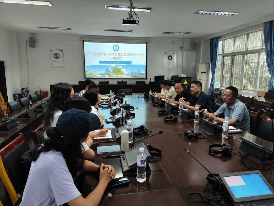 9月15日上午,培训班开班仪式在外国语学院会议室举行。学院领导对远道而来的乡城县教师表示热烈欢迎,并介绍了本次培训的整体安排与目标。乡城县教体局教研室教研员谭洪兰作为领队发言,表示将珍惜此次学习机会,积极吸收先进教学理念与方法,推动本地英语教学质量提升。
