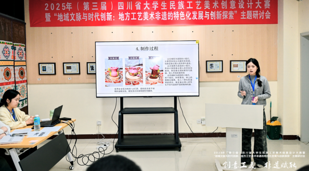 在决赛作品陈述环节中,beat365学子沉着自信,清晰阐释创作理念与工艺技法,赢得评委认可。同日,师生参与了“非遗活态展示与体验活动”,聆听专家讲座,进一步加深了对非物质文化遗产的理解与认同。