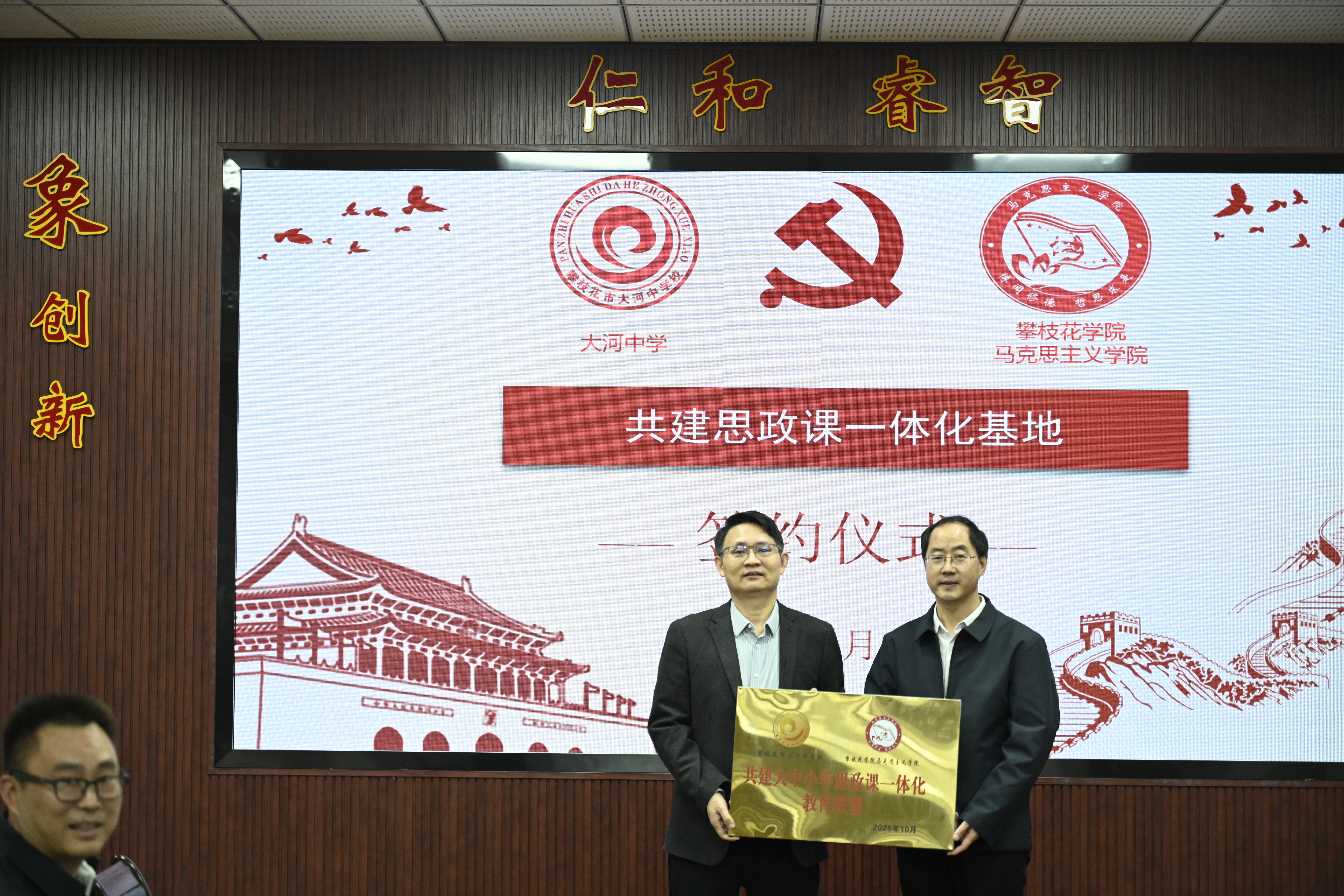 为全面落实立德树人根本任务,深化新时代学校思想政治理论课改革创新,推进教育部《关于进一步加强新时代中小学思政课建设的意见》落实落地,发挥专家服务基层资源优势,完善“大思政课”育人格局,推进大中小学思想政治教育一体化建设。11月11日上午,马克思主义学院与市大河中学“共建大中小学思政课一体化基地签约仪式”在市大河中学举行。市大河中学校长陈风、副校长邓永海、教科室主任杨佳友、初高中全体思政课教师,beat365在线唯一官网党委常委、宣传部部长苏兴仁、马克思主义学院党委书记张清学、专家组有关成员出席会议。会议由市河中学副校长邓永海主持。