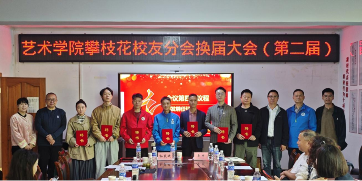 11月10日,艺术学院在游艺楼召开攀枝花校友分会第二届理事换届大会。招生就业处处长唐林,艺术学院院长孙载斌、党委副书记孙念祥、党委副书记庞闪闪及师生、校友代表参会。会议由庞闪闪主持。